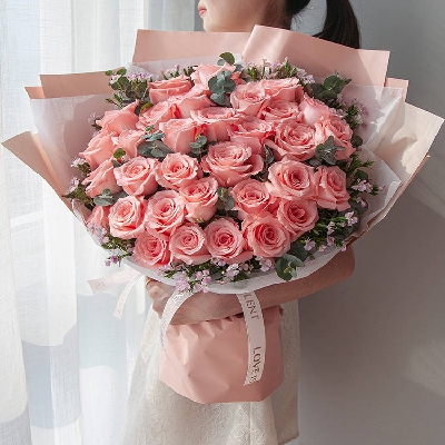 【花语】花语 33朵娇美的粉玫瑰,朴素的包裹着。似乎又回到曾经的纯真岁月,那时的我们自然、淳朴。我对你的爱也一直如此,深沉不虚浮......